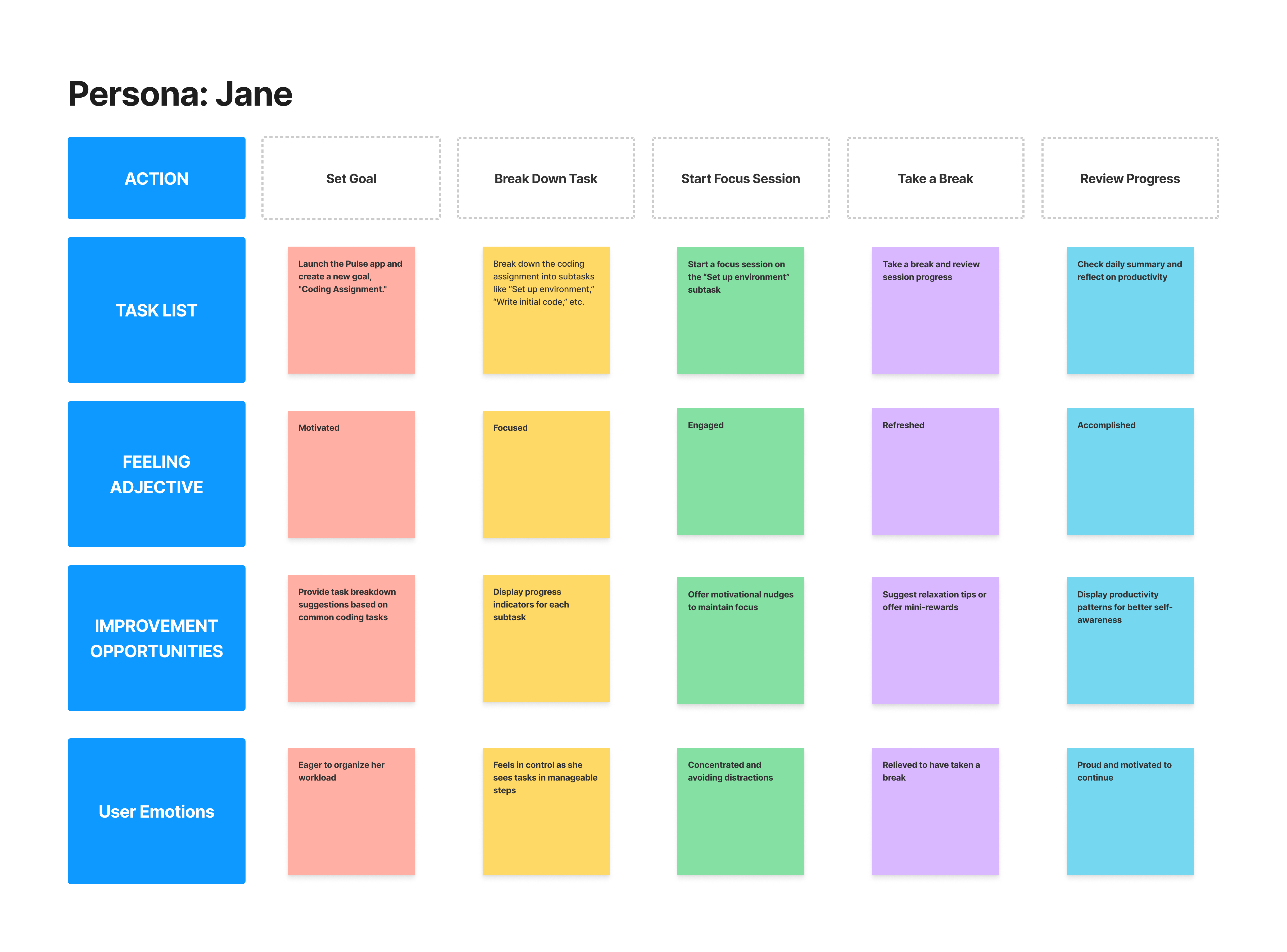 • User Task 2: Jane wants to stay engaged and productive by working in focused sessions